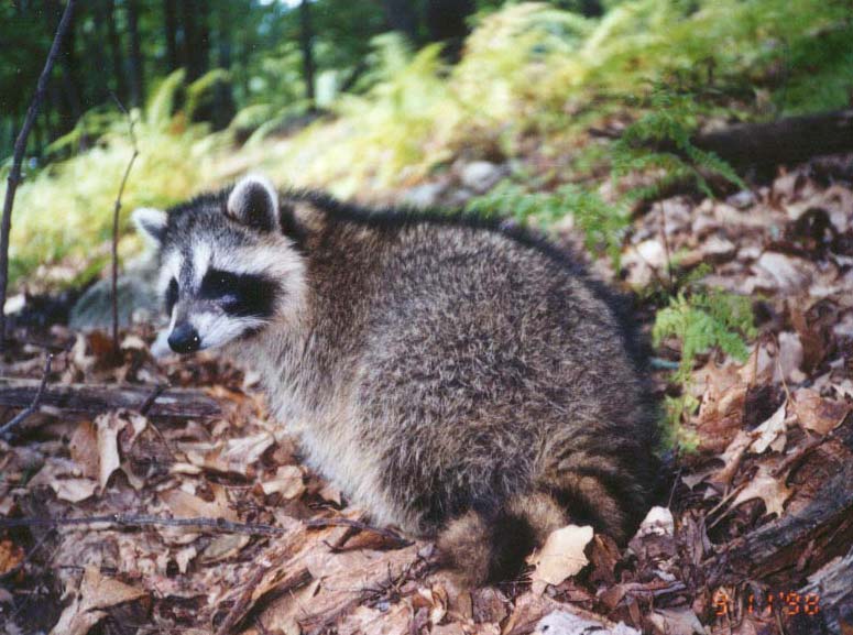 | Sue couldn't resist dressing Zorro up in this Santa suit when he was young - something he definitely wouldn't tolerate now. Zorro is just one of the raccoons that Sue has rehabbed and it's obvious she has a special place in her heart for all of them. Sue releases them by her house and some of them come back to pay her a visit for their lovins and treats. Raccoons know a good friend when they find one. |